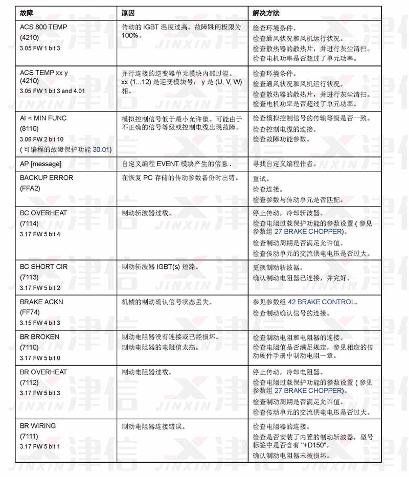 ABB ACS800變頻器在出現故障時,在控制盤顯示器中會顯示警告或故障信息提示信息,大多數警告和故障原因可以利用這些信息識別出來并給以排除。