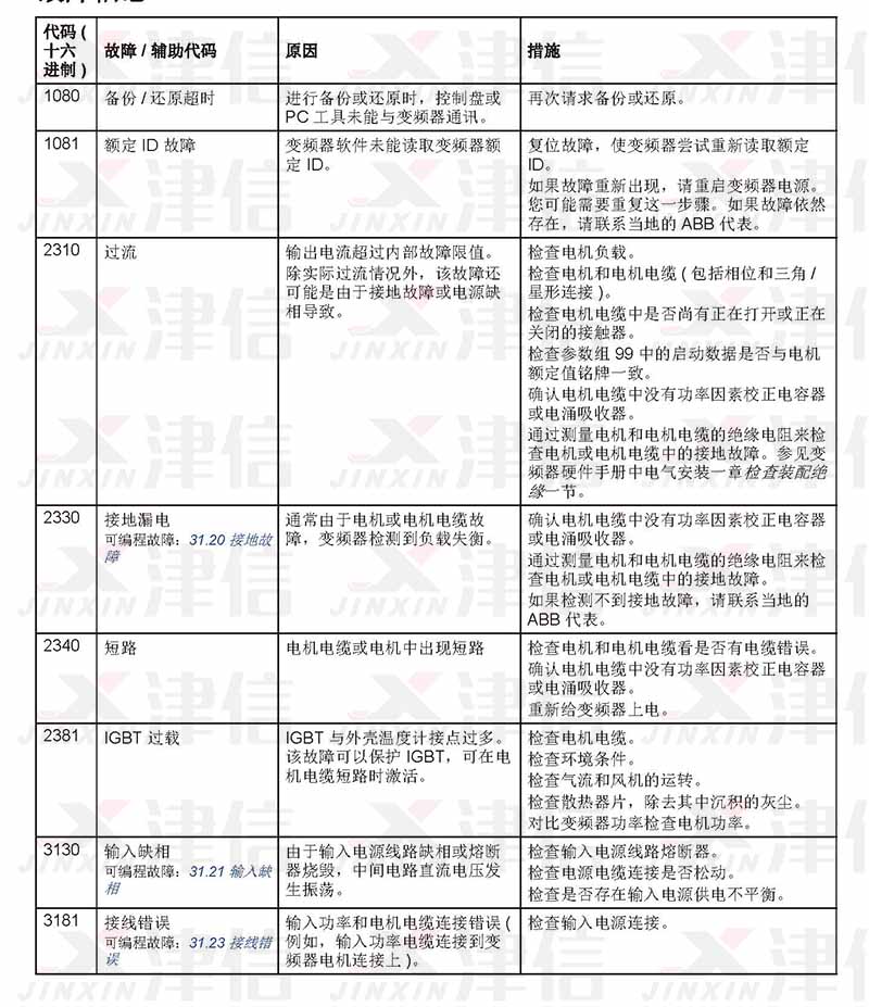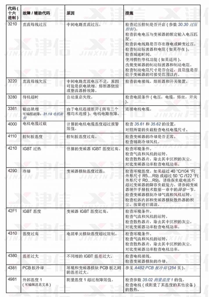 ABB ACS530在使用過程中遇到故障,可以通過以下故障代碼來對故障進行分析,并采取相應維修措施進行修復。