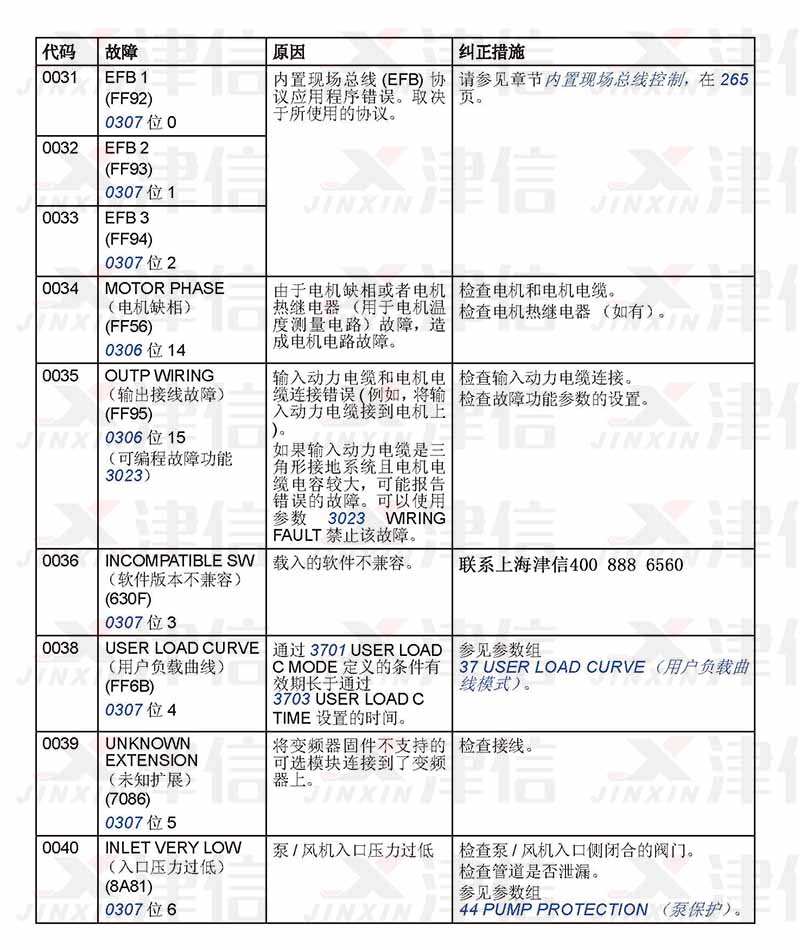 四、ABB ACS310變頻器0031-0040故障代碼,故障原因和糾正措施