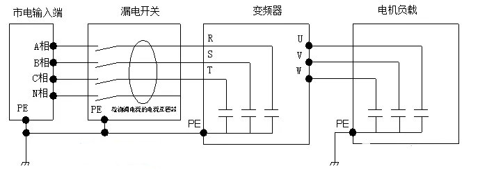一個(gè)舊廠房里安裝設(shè)備,現(xiàn)場(chǎng)變頻器上電啟動(dòng)一會(huì)后,配電箱里的塑殼斷路器就跳閘。老廠房120A的塑殼斷路器,自帶100ma的漏電保護(hù),也是比較煩人,只能通過(guò)進(jìn)線端引電。