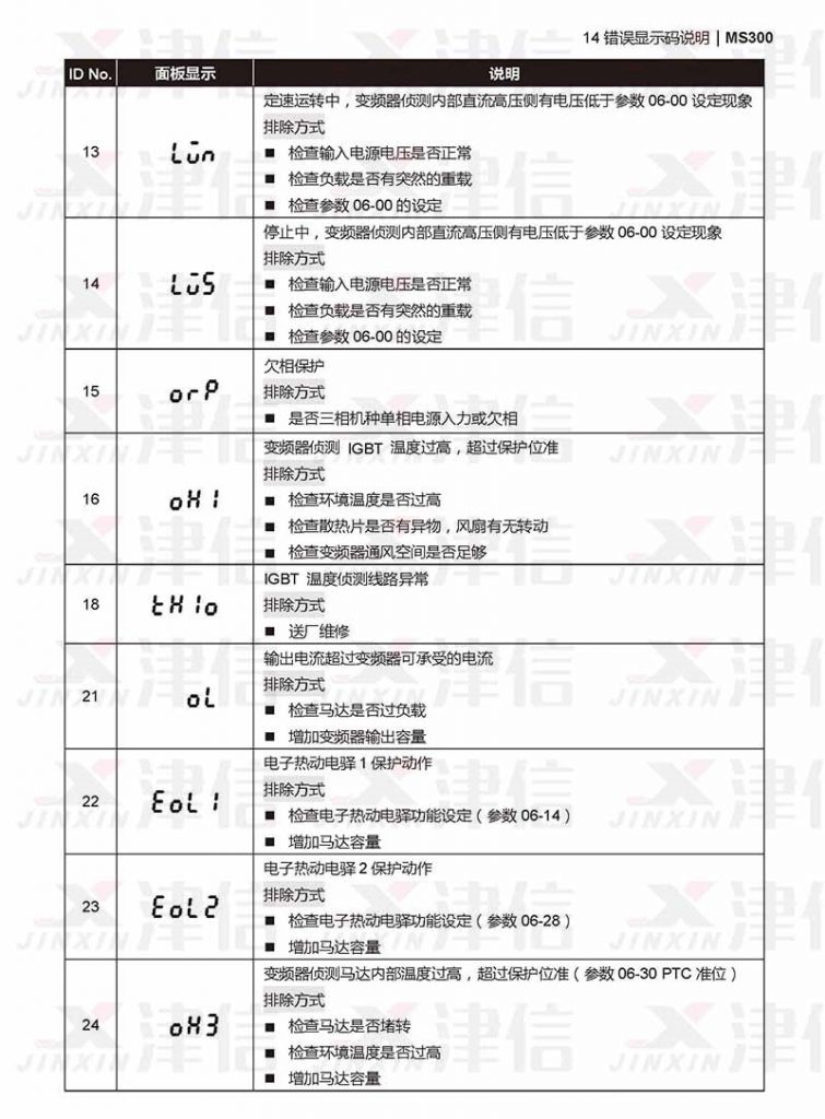 PE002額定電壓,E003額定電流,E004電壓校正,E005不動(dòng),E006電流校正。