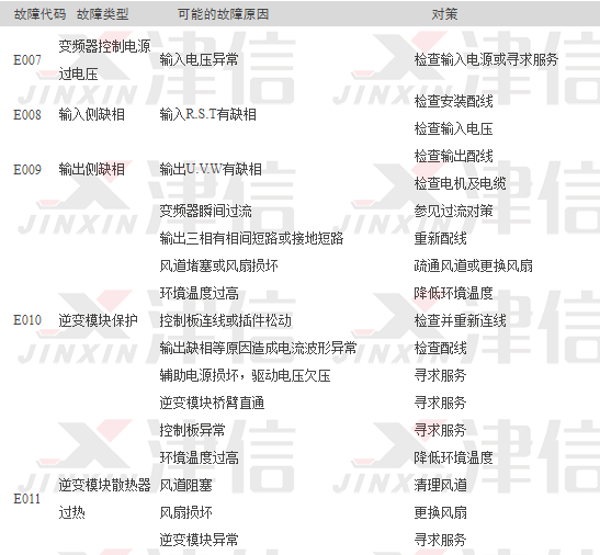 1,故障代碼E001,E002,E003,E004,E005,E006
