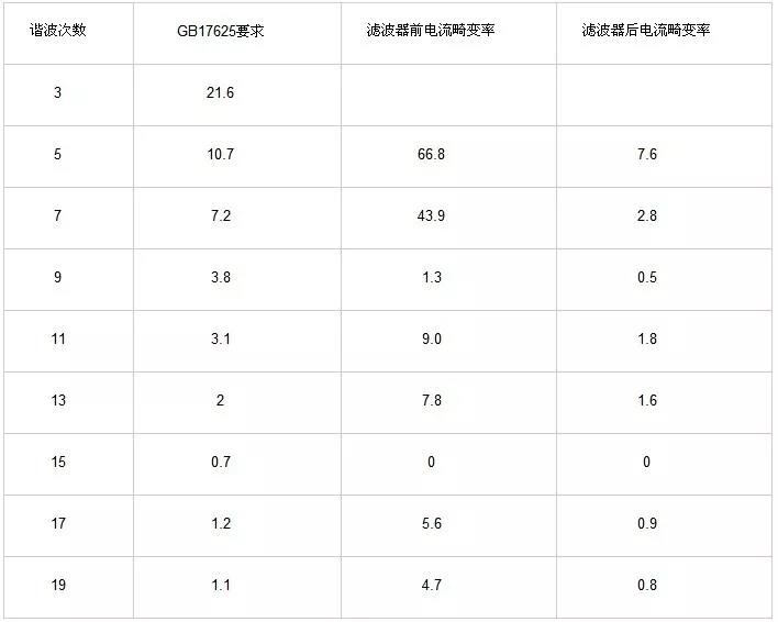 近年來,隨著變頻器的廣泛應用,變頻器配套諧波濾波器也達到了很大發展,很多變頻器廠商和濾波器廠商開發了性能良好諧波濾波器。表2是一臺離心式風機的控制柜(內含變頻器)安裝了諧波濾波器后的諧波測試結果。從表2可知,安裝濾波器后,完全能夠滿足GB17625標準的要求。