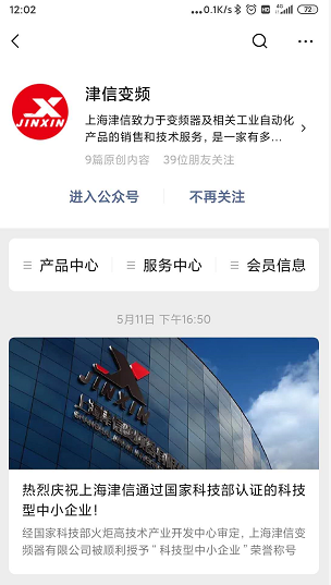 津信變頻微信公眾號推出以來,一直得到廣大用戶的歡迎和好評,用戶不但可以從微信公眾號獲得豐富的產(chǎn)品和技術(shù)信息,還可以獲得及時的在線服務(wù)。