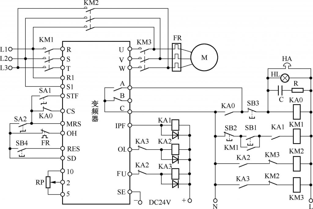 維修變頻器首先要能夠看懂并繪制變頻器電路圖,要想看懂變頻器電氣原理圖,首先要搞清楚其中的電氣原理及其符號所表示的含義。