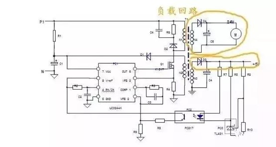 4、負載回路:N3,N4二次繞組及后續電路,均為負載回路,負載回路的異常,會牽涉到保護回路和穩壓回路,使兩個回路做出相應的保護和調整動作。