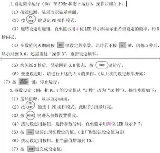 三菱FR-D700變頻器的操作面板及使用