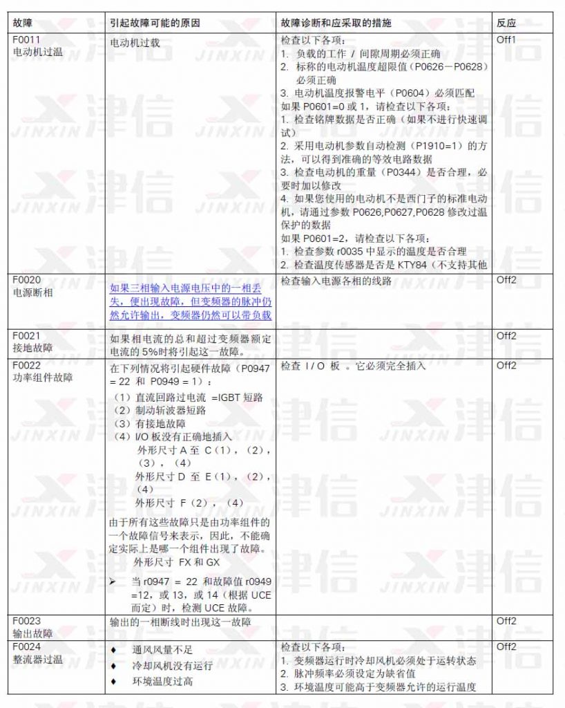 二、西門子變頻器故障代碼詳解